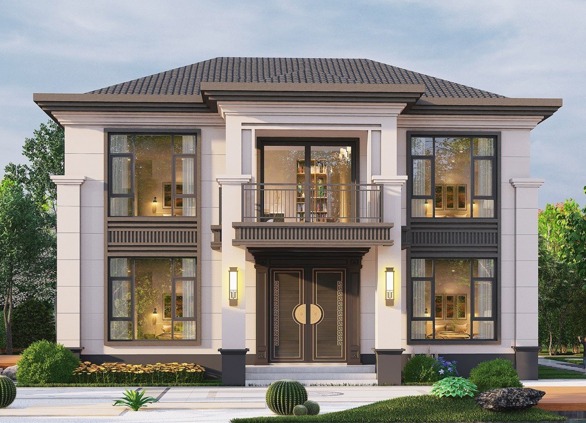 辽宁005 两层新中式(11.36x11.76米)-【易设计】